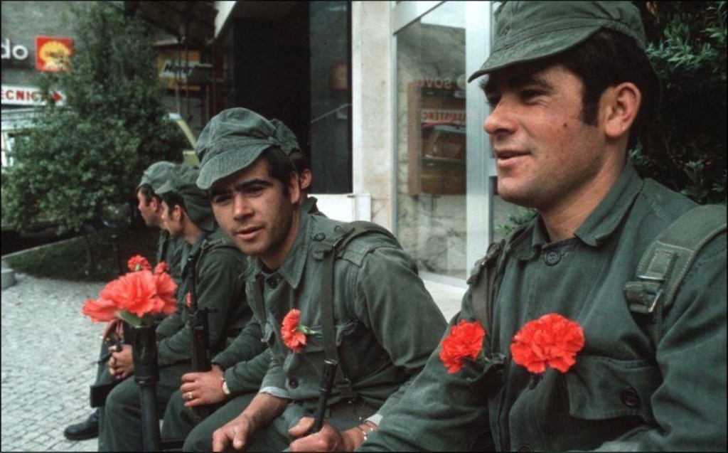 Es en este recorrido cuando comienzan a aparecer los primeros claveles rojos que los soldados colocan en los cañones de sus rifles, iniciando, sin saberlo, la iconografía de la Revolución de los Claveles.